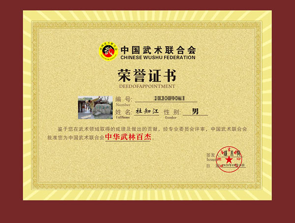 中国武术协会会员 、中国武术八段 、中华人民共和国国家级裁判、太极名家、中华武林百杰 。太极拳传播大使 、中国武术段位制考评员、国家级社会指导员 、中国武术高级教练 、运动技能高级武术健将。