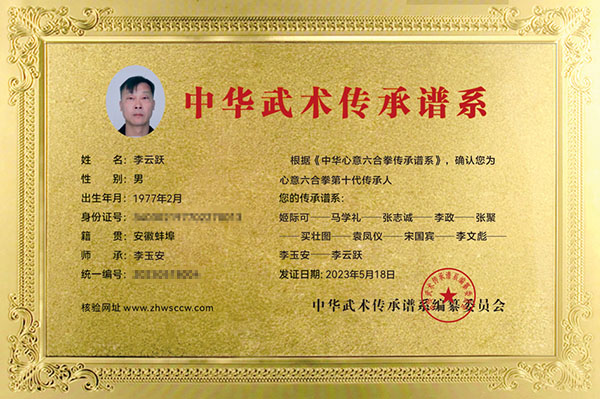 李云跃传承证书