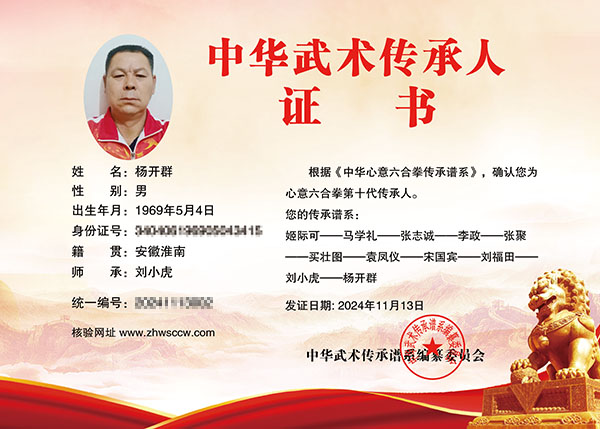 千年武魂,一脉传承。淮南市心意六合拳武协副会长,潘集区武协主席杨开群老师是“心意六合拳”第十代代表性传承人,杨老师拳法精湛,每一招每一式都展现出了他深厚的内功和技艺。而他的断门刀法,更是刀光剑影间,展现出了中华武术的博大精深。