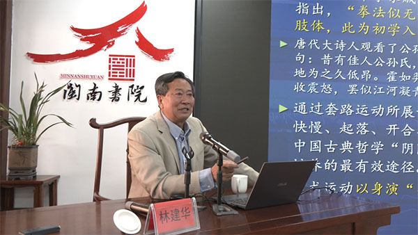 3月23日,漳州闽南书院举办专题讲座,特邀中国武术九段、国际级武术裁判、厦门大学教授林建华,主讲《浅谈中华武术在新时代的社会价值——兼谈“形意强身功”的健身价值》。讲座吸引了60余名武术爱好者、闽南文化爱好者到场聆听。