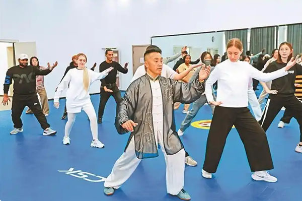 在武术体验环节,留学生们亲身体验了24式太极拳的魅力。在国家级武术考评员、太极拳高级教练李彦斌的指导下,他们一招一式地模仿着,虽然动作难言熟练,但认真和投入却赢得了在场所有人的肯定和点赞。
