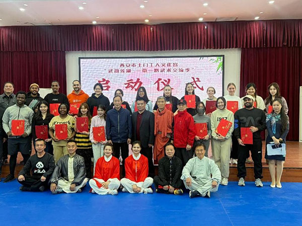 中国武术博大精深、源远流长,堪称中华民族瑰宝,在国际学生眼中颇具神秘色彩。3月30日下午,国际教育学院带领来自约旦、乍得、尼泊尔、坦桑尼亚、索马里、越南、泰国、巴基斯坦、俄罗斯、缅甸、马来西亚等国的20位国际学生前往西安市土门工人文化宫,参加“武韵莲湖·一带一路武术交流季西安市留学生武术文化周”活动,亲身感受中华武术魅力。