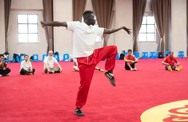来自塞内加尔的奥斯曼·萨科在讲师的指导下完成了一套长拳动作,虽然略显生涩,但随即被掌声包围。