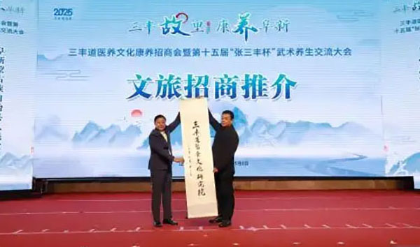 白福良在致辞中指出,阜新蒙古族自治县是一方钟灵毓秀之地,是一座文化底蕴深厚之城,也是一代宗师张三丰的故里。地处辽西走廊北端,既有蒙汉文化交融的独特魅力,又有承接京津冀、辐射东北亚的区位优势。近年来,全县以健康养生、休闲旅游为发展核心,系统整合县域内各类自然资源禀赋,致力于打造集传统与现代、文化与养生于一体的康养文化胜地。以全球珍贵的碳酸氢钠泉为核心,在宝地温泉小镇嵌入三丰文化元素,打造全国首个“太极康养度假区”,形成“药食同源、身心同治”的独特康养体系;以查海遗址、懿州古城、瑞应寺、海棠山、乌兰木图山为依托,以玛瑙、小米、花生、杂粮、红薯等特色产业为支撑,实现特色资源与人文历史有机融合,有效激发旅游发展活力。今天的阜新蒙古族自治县正以“三丰故里”文化IP,构建历史人文与现代康养的发展脉络,让古老智慧在新时代绽放光彩。未来,阜新蒙古族自治县将持续优化营商环境,出台系列专项政策支持产业发展,强化要素保障,让八方来客都能共享发展机遇,共商发展大计,共创美好明天。