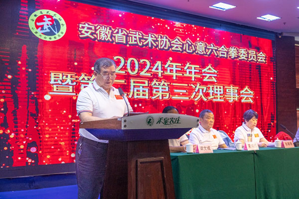 安徽省武术协会心意六合拳委员会赵新民会长做了2024年会暨第二届第三次理事会工作报告。