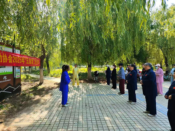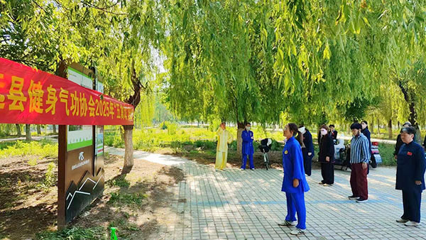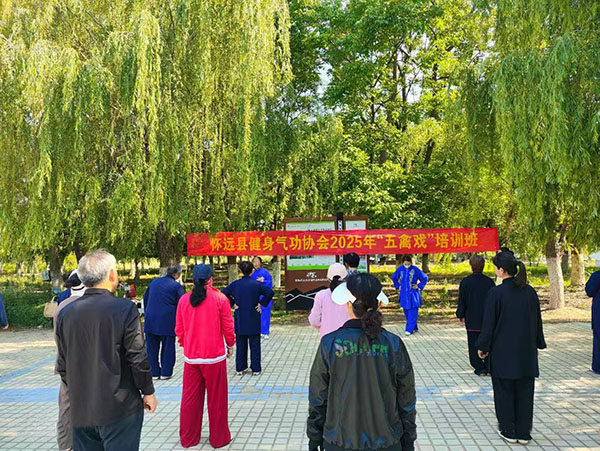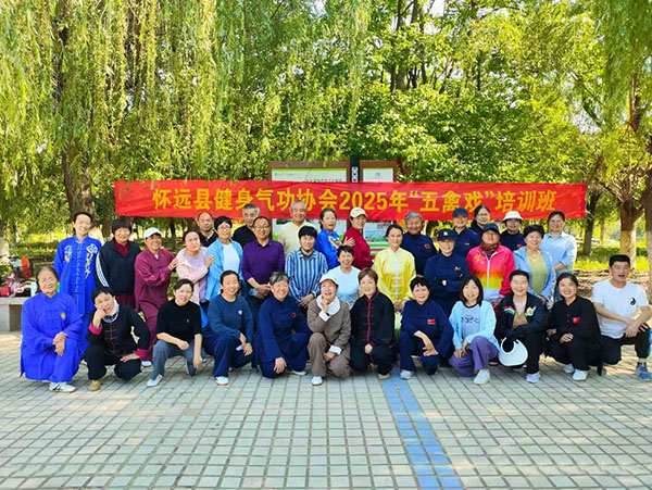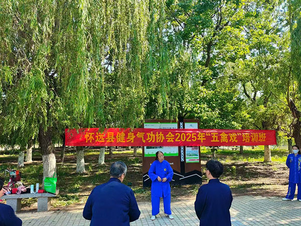微风吹拂、垂柳青绿。怀远县健身气功协会于2025年5月11日在美丽的淮河之畔,举行“怀远县健身气功协会2025年五禽戏”培训活动。