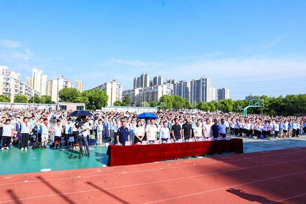 5月20日下午,合肥市天水路小学举办第二届“武韵童心 向美而行”体育节暨武术比赛开幕式。安徽省教育厅宣传中心新闻部主任闫鹏、合肥市学生事务管理中心主任孙伟、新站高新区社会发展局党委书记、局长陈志锋、合肥幼儿师范高等专科学校公共教学部主任赵青松、新站高新区社会发展局体育科科长李明等领导受邀出席活动。