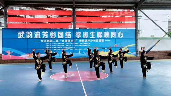 近日,红河州第二届“民族团结杯”传统武术沙甸邀请赛在“全国武术之乡”个旧市沙甸街道隆重举行。全州27支代表队、261名各民族武术健儿以武会友,在切磋竞技中展现中华武术精粹,共绘民族团结画卷。
