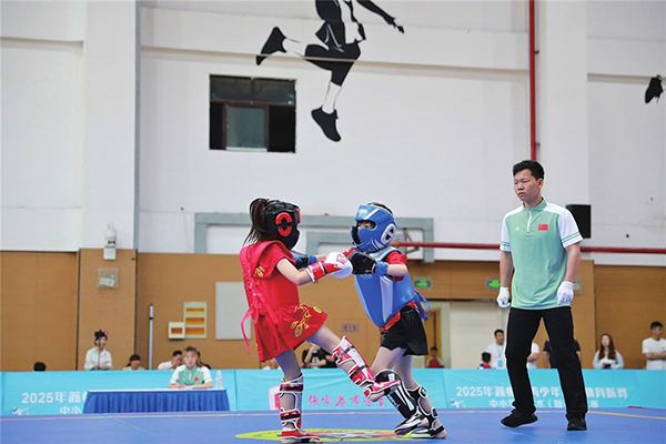 近日,2025年苏州市青少年阳光体育联赛中小学生武术(散手)比赛在张家港市崇真小学热血开擂,来自苏州各县级市(区)的300余名“武林少年”在擂台上以武会友,尽显中华武术的力与美、刚与韧。