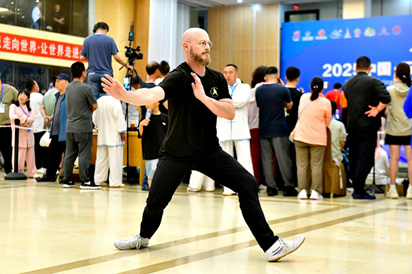 6月12日,来自美国的选手斯科特·福尔瑟姆在太极拳套路比赛中。