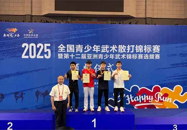 在刚刚结束的2025年全国青少年武术散打锦标赛暨第十二届亚洲青少年武术锦标赛选拔赛中,黔南州荔波县第二中学八(10)班学生朱俊坤表现出色,勇夺男子少年组48公斤级冠军,为贵州省代表队斩获一枚金牌。