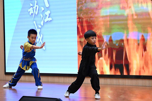 武汉代表团的表演同样精彩纷呈:《祥狮献瑞》的灵动跳跃引来阵阵喝彩;器械刀《行云流水》刀光如匹练,气势如虹;拳扇组合《太极神韵》将太极拳的沉稳与扇舞的飘逸完美融合;《将武中华》英姿飒爽,展现少年武者风采。