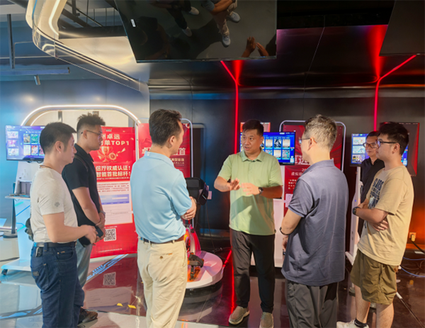 2025年7月14日,武术学院院长关博、副院长陈晓丹及武术套路教研室党支部书记梁琦敏一行到访广州卓远虚拟现实科技股份有限公司(下称“广州卓远”),与广东省虚拟现实产业技术创新秘书长姜军毅、广州卓远首席运营官蒋子俊等企业代表展开深度交流,共探民族传统体育与数字技术融合发展的新路径。