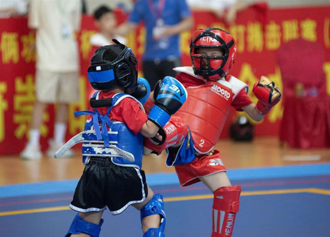 赛场上,选手们精神饱满、斗志昂扬,拳来脚往,互不相让。远踢、近打,漂亮的组合拳,精彩的腿法攻击,拳脚打在护具上,不时发出“砰砰”的响声。选手们在擂台上挥洒汗水、各显身手,展现了力量与技巧的对抗,博得现场观众的阵阵喝彩。赛场下,队友们的加油声、喝彩声、欢呼声此起彼伏。25日当天,赛事吸引了近万名“功夫迷”现场观看。
