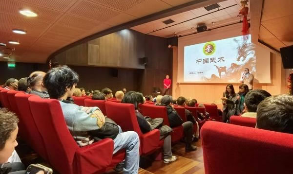 10月31日下午,面向巴黎市民的武术讲座在巴黎中国文化中心举行。冯静坤教练作为主讲人全面介绍了中国武术的历史、流派及风格特点,并阐述了武术的养生健身价值。运动员同步进行了不同拳种动作展示,让法国观众全面了解了中国武术的内涵与魅力。200多名市民聆听了讲座,并对武术产生了浓厚兴趣,争先恐后地预约观看11月2日的专场表演。