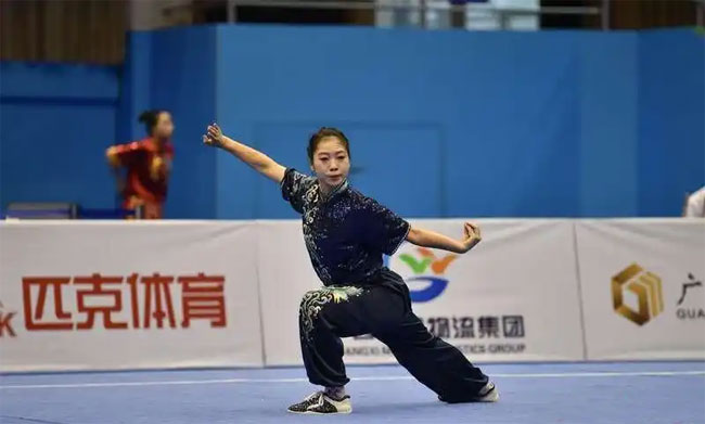 这是湖南师范大学武术与民族传统体育专业大四学生文彧,第二次参加全国最高水平的学生运动会。2021年的暑假,文彧参加了在山东青岛举行的第14届全国学生运动会,但当时在个人比赛项目上的成绩不理想。这次在广西南宁,文彧终于站上了学青会的最高领奖台,这也是对她习武12年的最好褒奖。