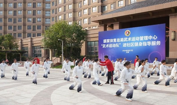 9月27日下午,根据华康街道居民健身需求,我中心选派了吕泰东、刘德文、卢向成、王彦宇、纪豪、钱康、李洋7名太极拳世界冠军,走进天津市华康街道康宁津园开展健身指导服务。在现场,世界冠军们向大家展示了一套集体42式太极拳,随后,华康街道太极队集体演练了一套24式太极拳,展示他们的健身成果和太极风采。随后,7名世界冠军与华康街道的太极拳爱好者们进行辅导互动,共享全民健身乐趣。