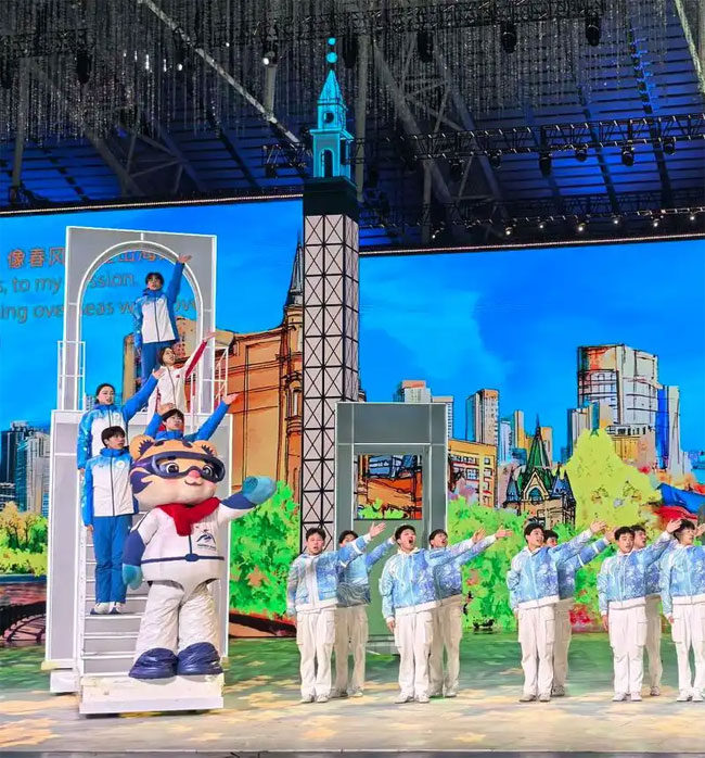 如今在亚冬会闭幕式上,河南功夫小子将带着开幕式的余韵再次登场,在《他日再相逢》节目中,他们不再是往日里人们印象中拳脚刚劲有力的模样,而是伴随着悠扬欢快的音乐,跳起了轻盈灵动的舞蹈。“谢谢哈尔滨!”“谢谢您”“谢谢志愿者”…… 一句句真挚暖心的话语,在现场缓缓流淌;一幕幕充满温情的合影留念,定格成了动人的画面,让现场的每一个人都沉浸在这浓浓的情谊之中,对这场盛会充满了不舍。