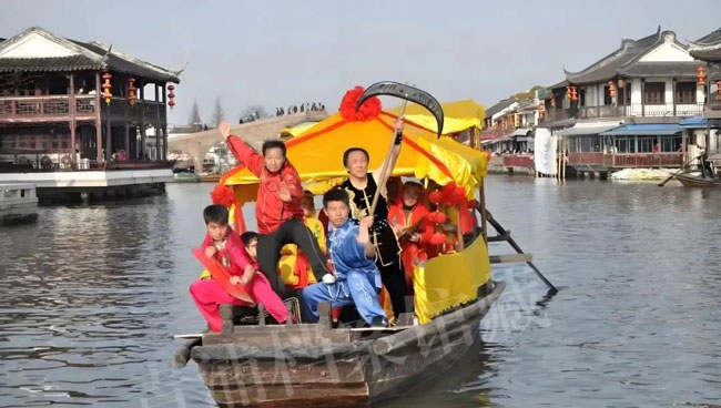 朱家角漕港河上船拳表演