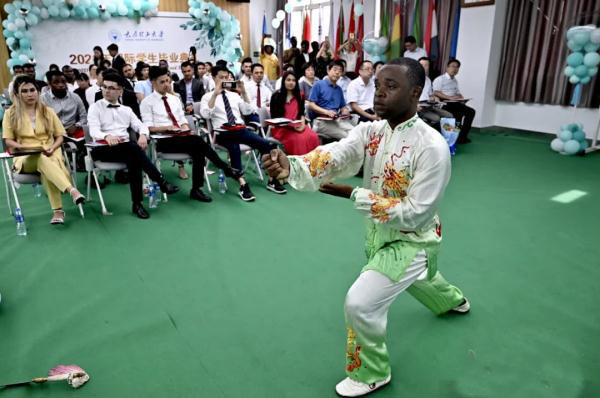 2021年6月,太原理工大学来自莫桑比克的留学生马可表演中国武术