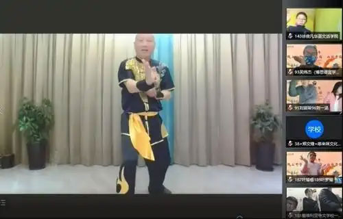木权通老师从五祖拳最基础的起手式开始,一个动作一个动作地示范给学生们看。远在西班牙的学生们通过摄像头跟随木权通老师一招一式地练习。一些学生表示,等疫情过去后一定要到中国拜访木老师,继续学习南拳。