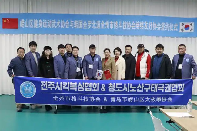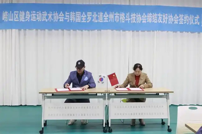 2月21日,一场意义非凡的签约仪式在青岛陈氏太极拳国际培训基地圆满举行,崂山区健身武术运动协会与韩国全罗北道全州市格斗技协会正式缔结友好协会。