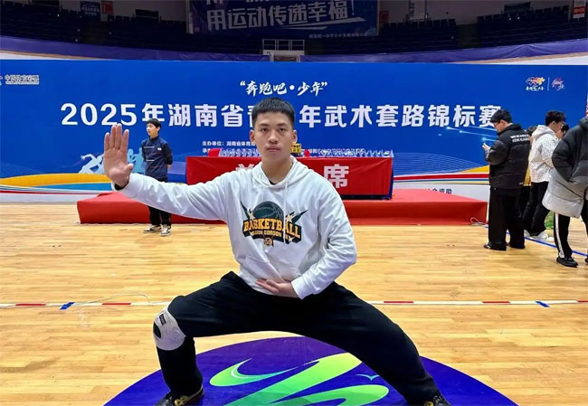 2月18日至20日,2025年湖南省青少年武术套路锦标赛在益阳奥林匹克公园体育馆举行。永州的唐睿涵同学凭借扎实的武术功底、精湛的技艺和顽强的拼搏精神,在众多选手中脱颖而出,一举夺得男子U18岁组陈式太极拳第一名。