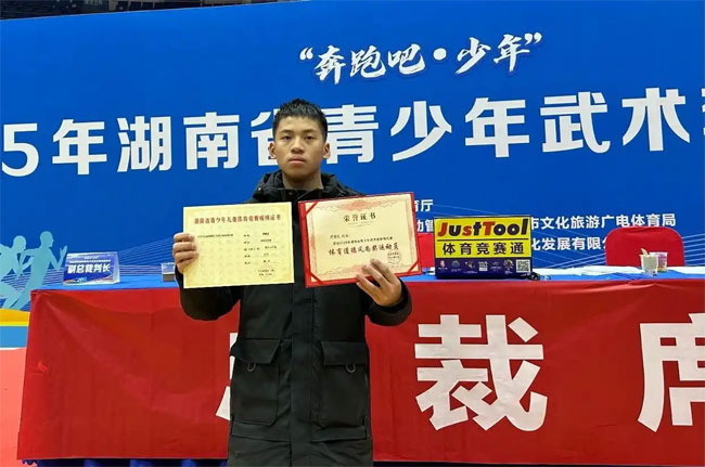唐睿涵在2025年湖南省青少年武术锦标赛夺冠