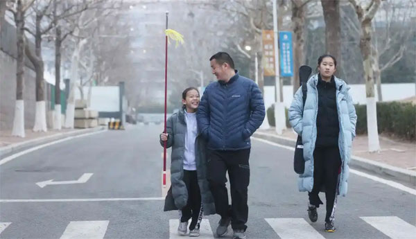 3月1日,48岁的万学明带着两个女儿在青岛市体校练习武术套路,每次训练结束后,俩闺女就跟着父亲,拉着手一起走到车旁,跟着爸爸一起回家。有时候训练结束后姐妹俩会在体校食堂吃饭,万学明就在学校外等女儿吃完饭再接回家。