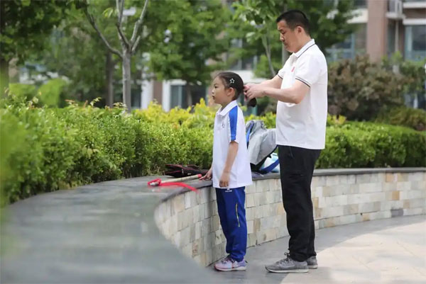 2023年5月份,练完武术后小万给女儿梳理头发。