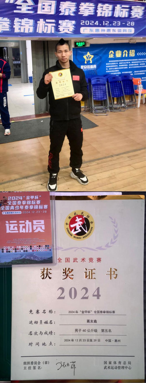 深圳福田区自由搏击运动员葛友鑫斩获泰拳全国大赛第五名!