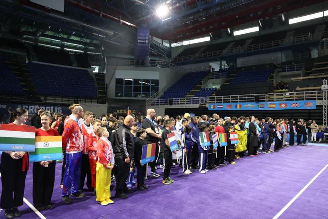 伴随着响彻全场的中国鼓点,在各国代表团带来的武术表演中,比赛正式拉开帷幕。各国比赛选手轮番上场,拳法多变、身姿灵巧,引来现场观众欢呼不断、接连喝彩。本次比赛设套路、咏春、散打、搏击等8个大项,经过两天的激烈角逐,最终评选出共计400个不同年龄段和比赛分组的冠军。