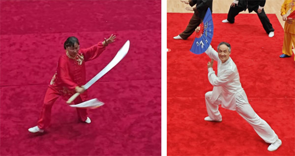太极器械的赛场上,各位队员技法娴熟,姿态优雅,身姿挺拔而矫健, 展现出非凡的气质和风度。