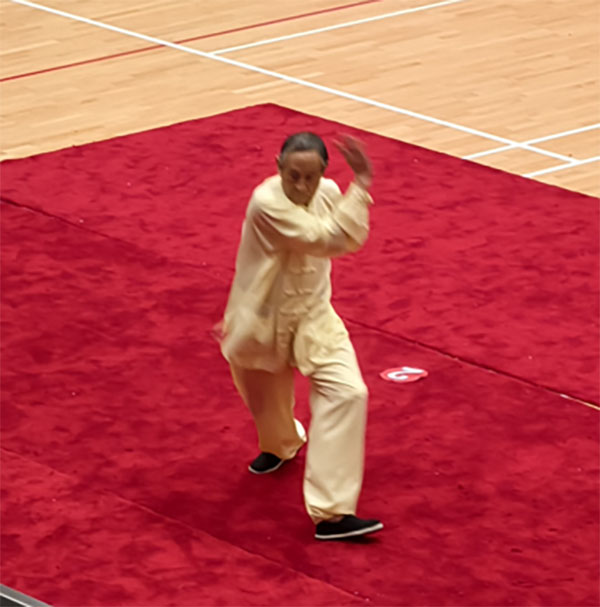 我们队伍中年龄最长的时苏军队员,在赛场上展示出了沉着稳健,敢拼勇搏的状态,其对武术的热爱及坚守实为吾后辈之楷模。