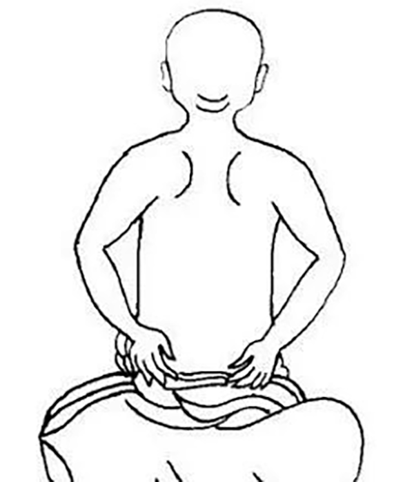 待收功时,将气由鼻孔缓缓呼出,双手收回握固,轻置于两膝之上,方可继续接练下一段动作。