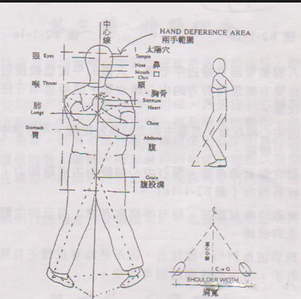 防守的绝对性:中线平面是人体重心与要害的集中区,包括咽喉、心窝、丹田等致命部位。咏春的实战预备姿势(如二字钳羊马)要求双手前后护住中线,形成“里帘必争”的防御态势。当对手攻击时,守中线者可借助“分水”手法,沿中线平面消解外力,使对方难以借势反击。