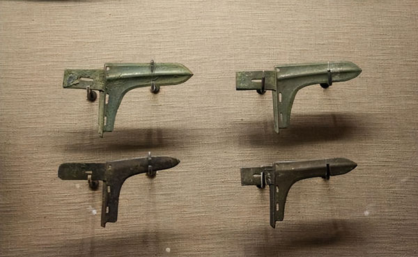 随着青铜冶炼技术的发展,士兵们的战斗兵器和训练用的兵器也在不断的改进。