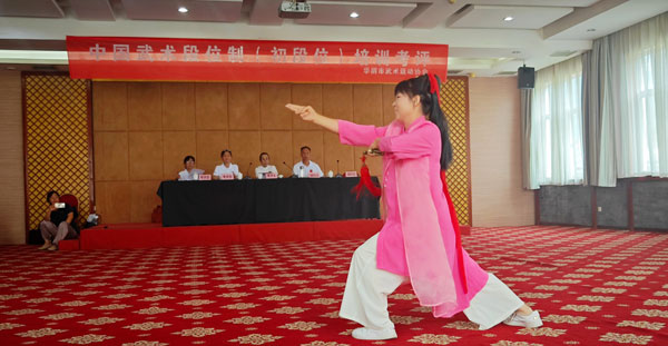 来自华阴市华山武术院、精华英才武术培训中心、明亮武术培训中心的青少年运动员和华阴市武术协会的太极拳爱好者参加了考试。最后,参加测评考试的50名武术运动爱好者以优异成绩通过考试。
