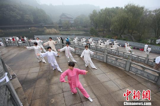百余位太极爱好者们练习太极拳