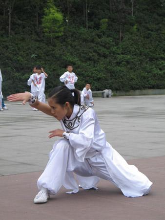 (2)武当武术。因发源于湖北均县境内的武当山而得名。武当武术起源于元末明初,盛行于明末清初。武当拳的风格特点是以静制动,以柔克刚,以短见长,以慢击快,以意运空,以气运身。武当派拳术有无极拳、鹞子长拳、猿猴伏地拳、六岁散手和五当太乙五行拳等。武当兵器有武当剑、白虹剑、六合枪、六合刀、松溪棍等。太权拳属武当著名拳种,影响极大。太极拳在长期流传中,演变出许多支派,其中流传最广、影响最大的太极拳有陈式太极拳、杨式太极拳、吴式太极拳、武式太极拳和孙式太极拳。后经提炼整理,又出现简化太极拳、四十八式太极拳、八十八式太极拳等套路。