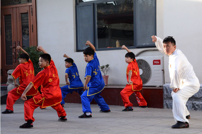 近日,在河北省沧州市献县淮镇的关东拳传承基地内,不时传出阵阵洪亮清朗的练武声,十余个孩子在沧州市非物质文化遗产——关东拳代表性传承人远玉华的指导下,正在整齐划一地操练着。他们身着传统的练功服,缠手、压掌、崩拳、抢手、弓步、击拳、出腿,动作流畅自然,刚劲有力。
