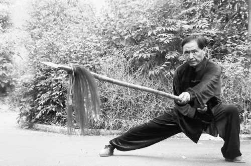 胡门大洪拳总传承人胡振志在习练大枪术(里拨枪)
